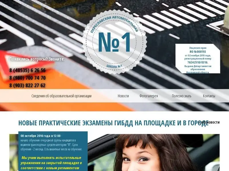 «Переславская автомобильная школа №1» основана в июне 2010 года. За это время была проделана большая работа по улучшению качества подготовки будущих водителей. Оборудована закрытая от движения площадка, которая способствует эффективному освоению всех необходимых практических навыков вождения. Учебный класс автошколы отвечает всем требованиям современных методик обучения и подготовки к сдаче экзаменов в ГИБДД, имеются компьютеры с лицензионным программным обеспечением. Так же есть экран с возможностью для вывода и разбора учебной информации.