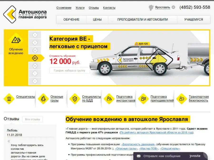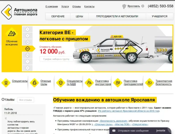 «Главная дорога» – автошкола, которая ставит перед собой цель реализации как программ повышения квалификации ( «Опасные грузы», «Мастер ПОВ», «Спецсигналы», «Безопасность движения»), так и программ профессиональной подготовки ( «Водитель автомобиля кат. «В»).