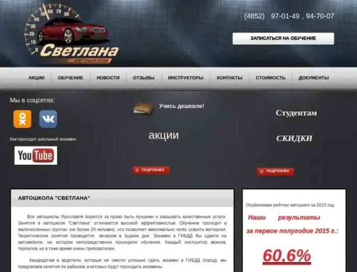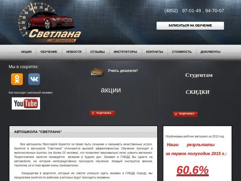 анятия в автошколе "Светлана" отличаются высокой эффективностью. Обучение проходит в малочисленных группах (не более 20 человек), что позволяет максимально легко усвоить материал. Теоретические занятия проводятся в удобное для Вас время — вечером в будни или по выходным. Экзамен в ГИБДД Вы сдаете на автомобиле, на котором непосредственно проходило обучение. В нашей автошколе Вы самостоятельно выбираете инструктора и автомобиль. Каждый инструктор вежлив, терпелив, но в тоже время очень требователен. Кроме этого, в нашей автошколе отсутствуют очереди на пересдачу в ГИБДД. Для тех, кто уже имеет водительское удостоверение, автошкола предлагает практические занятия по восстановлению утраченных навыков, преодоление неуверенности на дороге, отработка нужных Вам маршрутов. Количество занятий по необходимости.