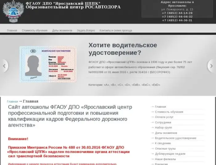 ФАУ «Ярославский центр профессиональной подготовки и повышения квалификации кадров Федерального дорожного агентства».